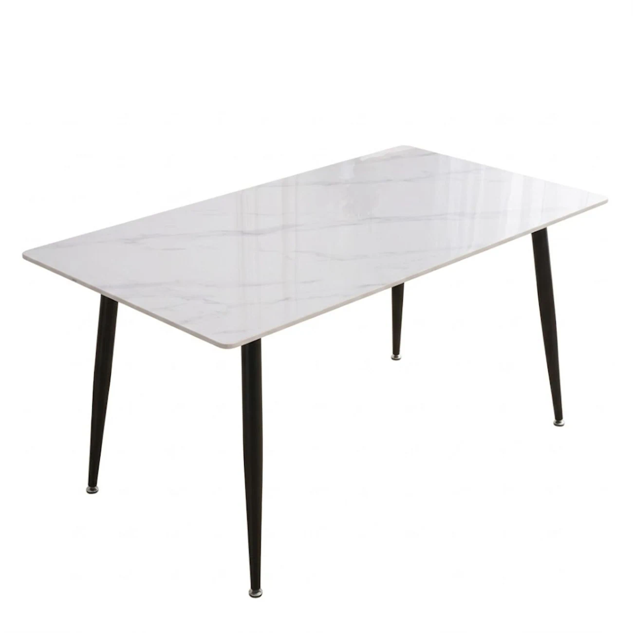 שולחן אוכל עם פלטת קרמיקה בגוון שיש לבן במידות 120/70 ס"מ ורגלי מתכת שחורות